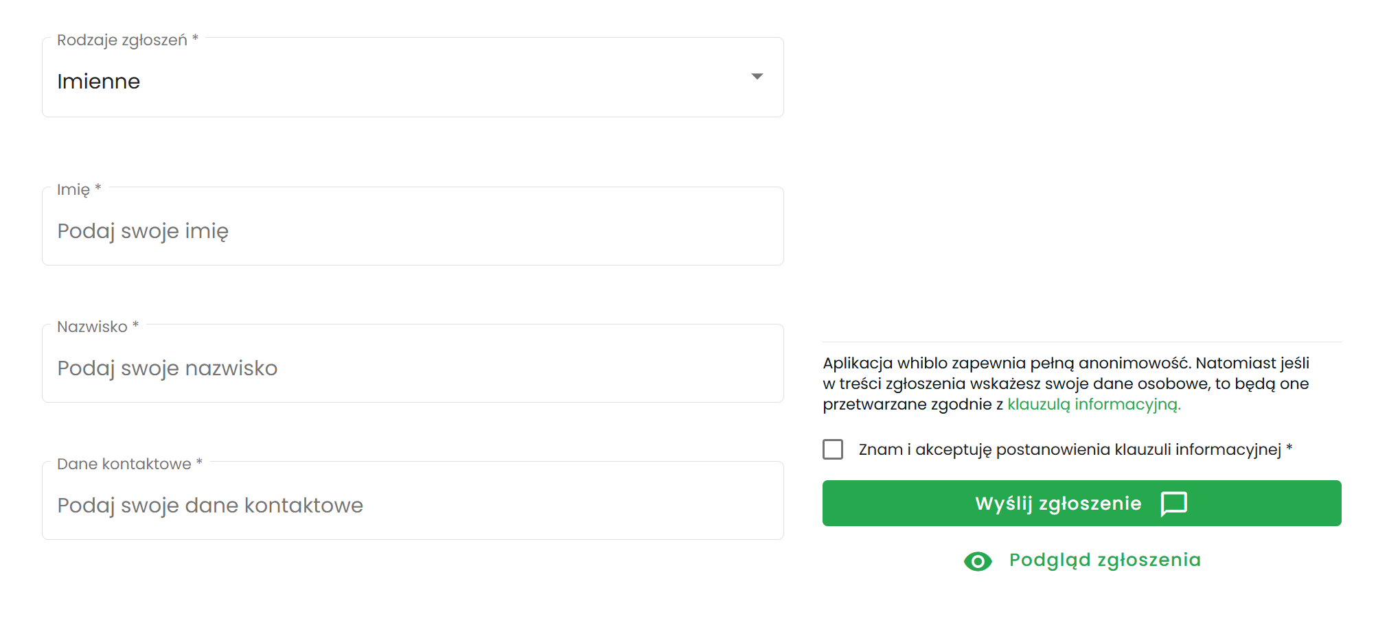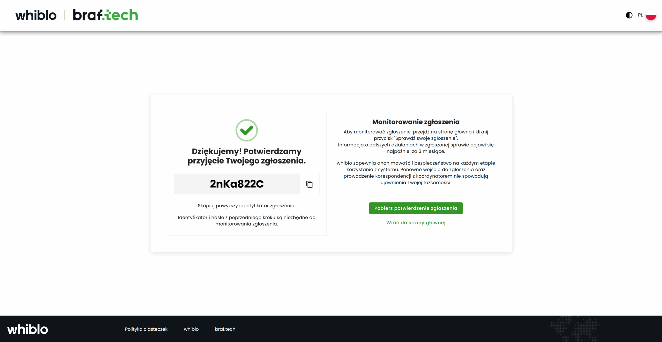 Wdrożono Whiblo – aplikację komponowaną na miarę organizacji z modułem anonimowej komunikacji, zaawansowaną walidacją zgłoszeń i dwustronnym systemem korespondencji z sygnalistą.
